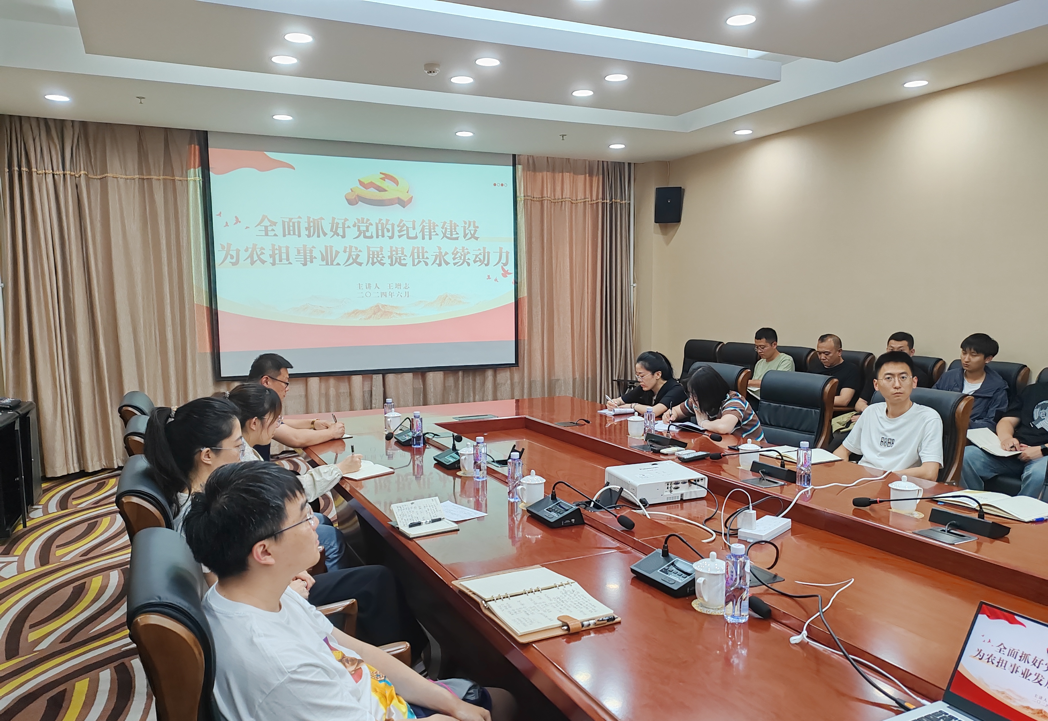 在中國共產(chǎn)黨成立103周年前夕,市農(nóng)擔公司黨委書記、董事長王增志同志以“全面抓好黨的紀律建設(shè) ,為農(nóng)擔事業(yè)發(fā)展提供永續(xù)動力”為題,向市農(nóng)擔公司全體黨員干部職工講授遵守黨的紀律專題黨課。