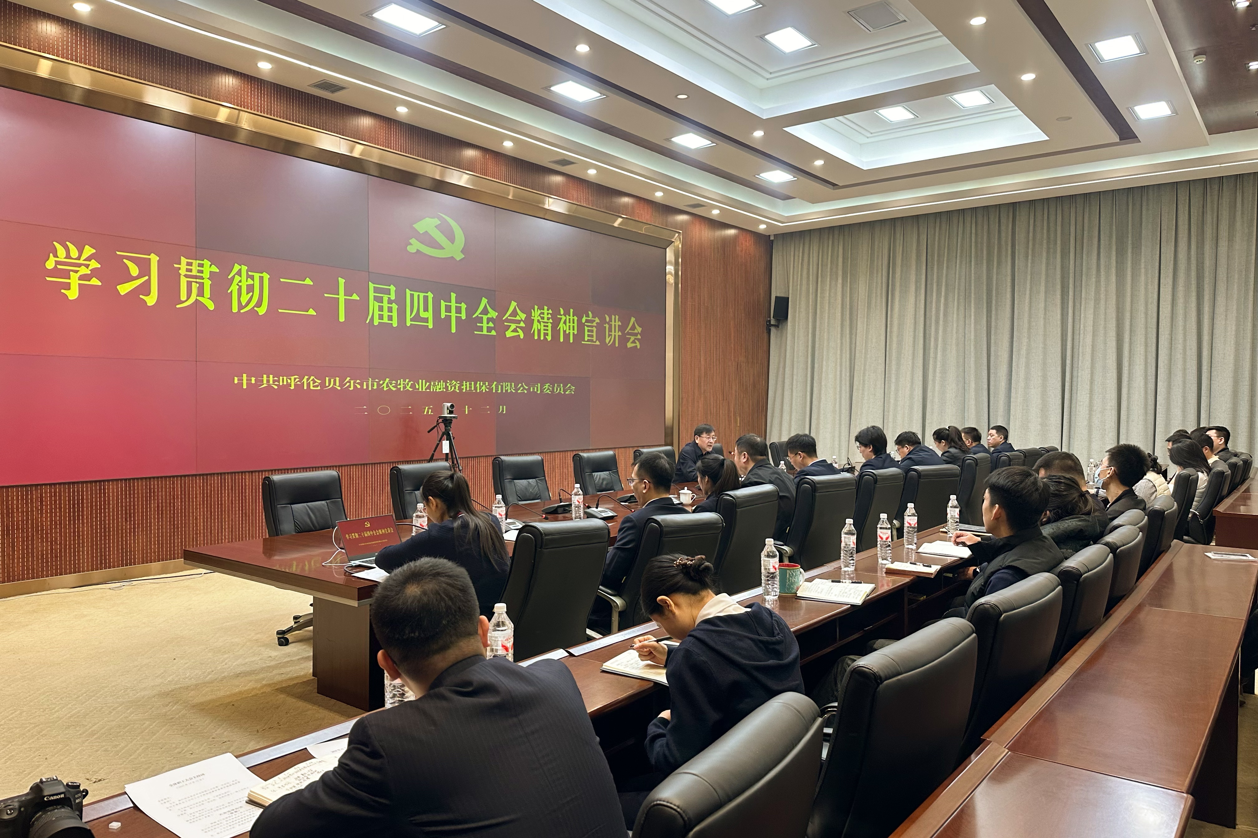 2025年12月12日,呼倫貝爾市農(nóng)牧業(yè)融資擔(dān)保有限公司黨委召開學(xué)習(xí)貫徹黨的二十屆四中全會(huì)精神宣講報(bào)告會(huì),專題學(xué)習(xí)全會(huì)精神并研究部署貫徹落實(shí)舉措。公司黨委書記、董事長(zhǎng)王增志作宣講報(bào)告,全體干部職工參加會(huì)議。